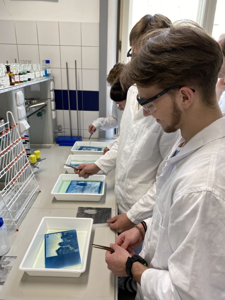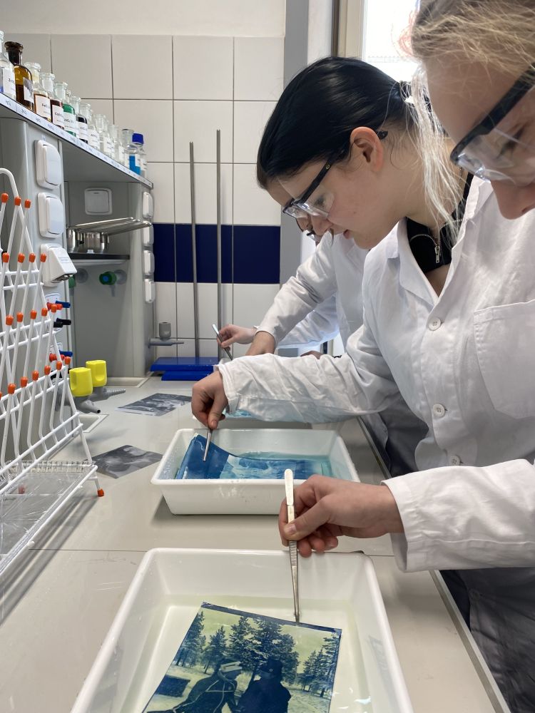 Výroba fotografií z vlastních grafických předloh s využitím historických technik (kyanotypie, proces Van Dyke) založených na jednoduchých chemických reakcích sloučenin citlivých na světlo.