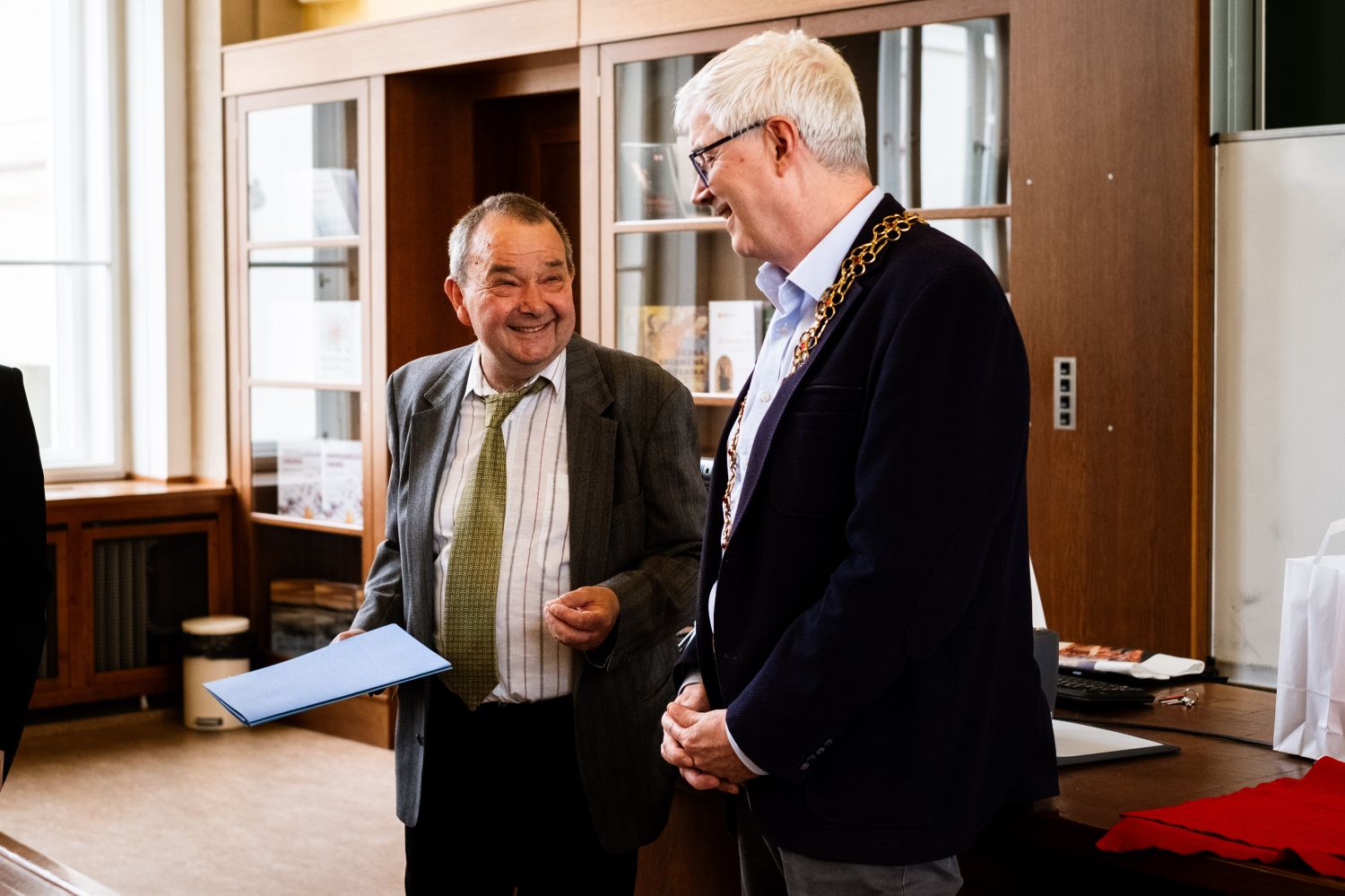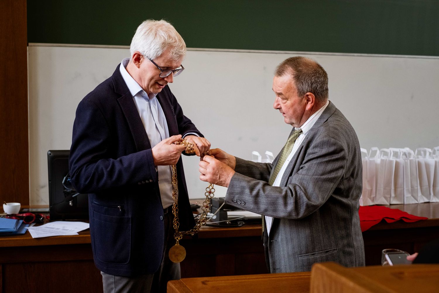 Předávání certifikátů absolventům. Prof. Pospíšil - rektor VŠCHT, ing. Březina - garant
